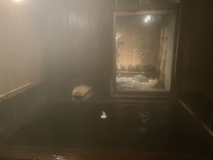 ♨️敷地内に湧く自家源泉で黒い湯の花が舞うよき温泉を