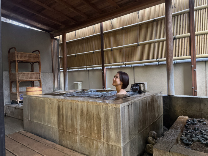 小休憩後にお部屋に付いているよき温泉へ