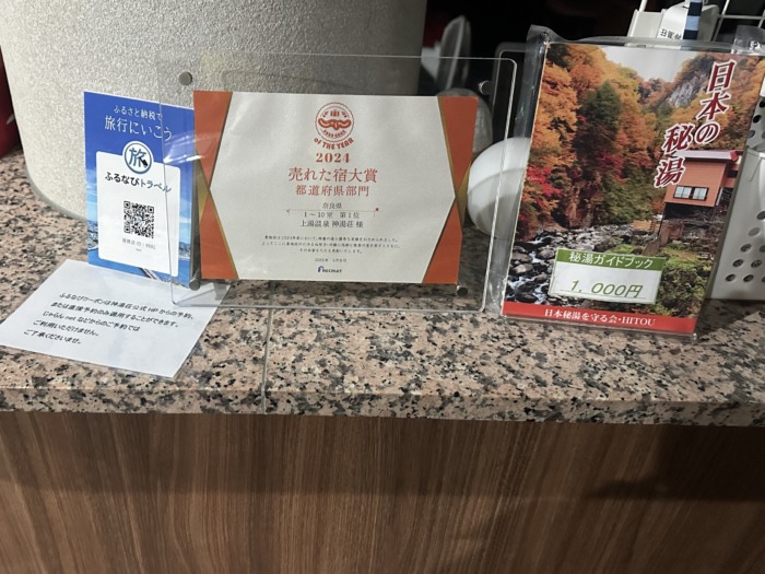 OTAで売れている宿ということで表彰されたものが置いてありましたよ。