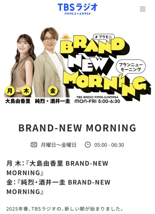 TBSラジオ「大島由香里 BRAND-NEW MORNING」にて