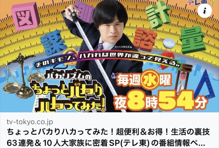 2026年1月21日(水)テレビ東京「ちょっとバカりハカってみた」に出演しました